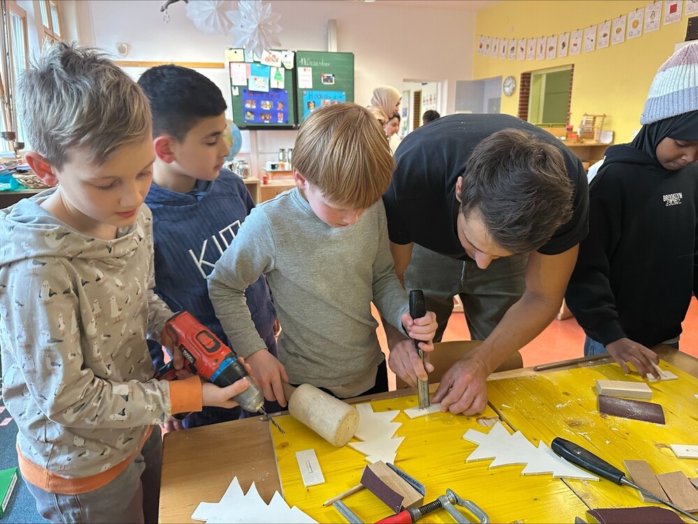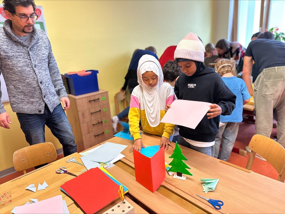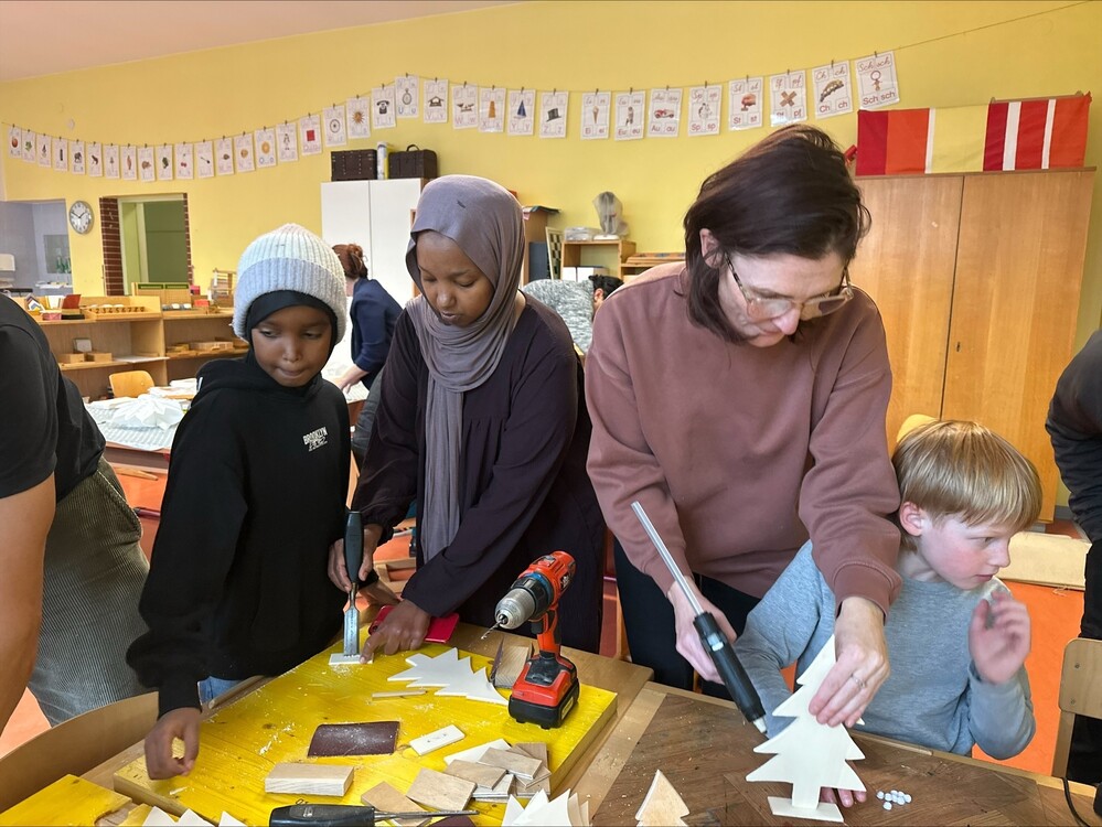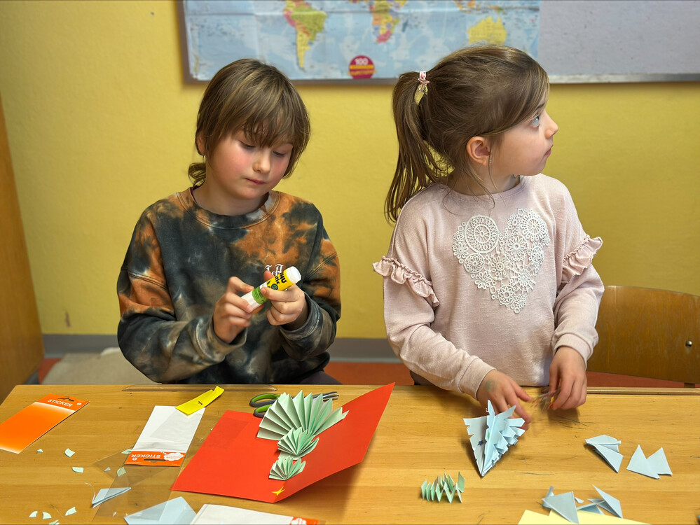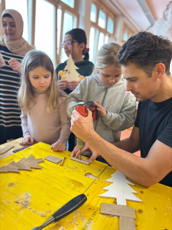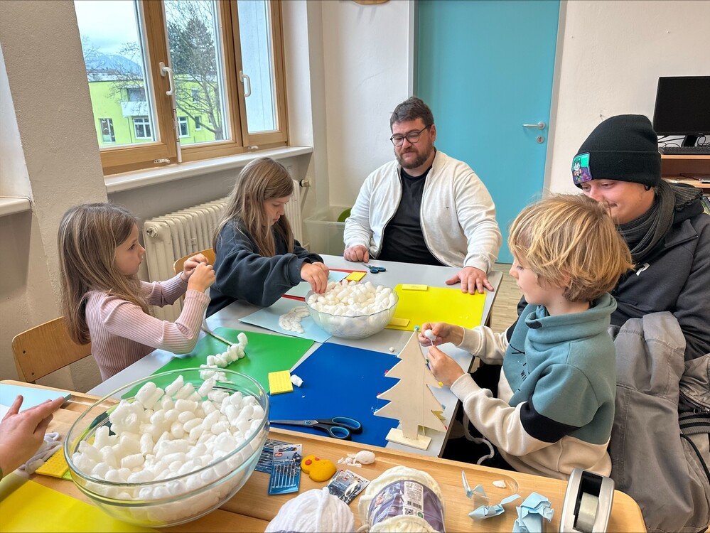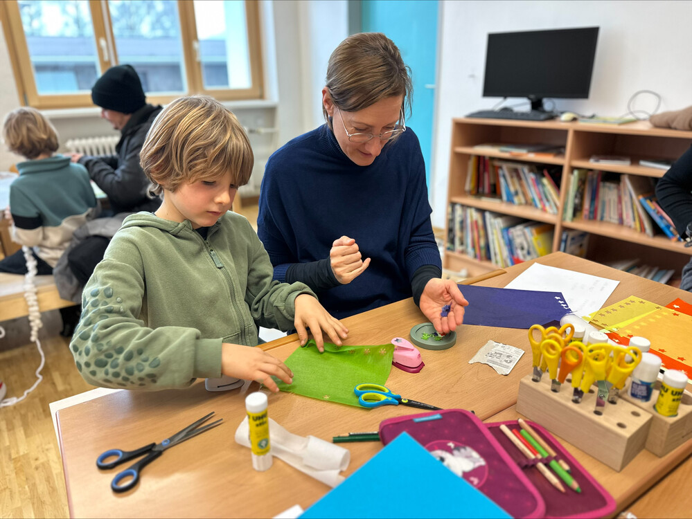 Viele Mamas und Papas waren da und haben gemeinsam mit ihren Kindern gebastelt und auch die anderen Schüler:innen unterstützt. Es war ein rundum gelungener Nachmittag in gemütlicher Atmosphäre.
