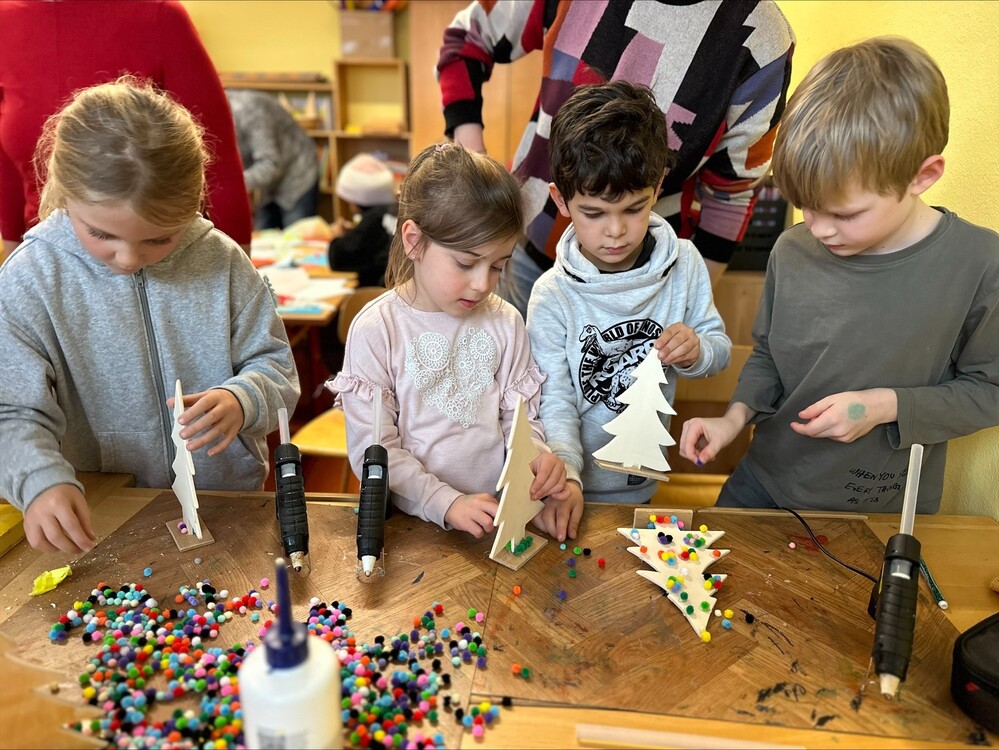 Beim weihnachtlichen Bastelnachmittag haben sich in diesem Jahr einige Eltern besonders kreative Bastelstationen überlegt.