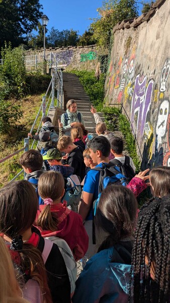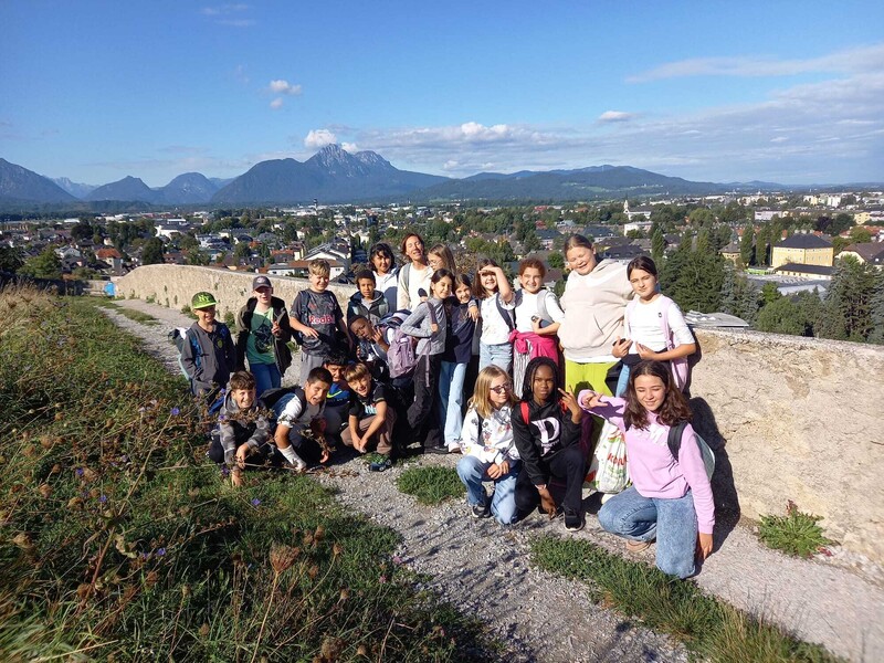 in der ersten Schulwoche und wanderten von der Müllner Kirche auf den Mönchsberg. Über die steile Stiege mit gutem Ausblick auf die Salzburger Brücken und die Festung ging es zuerst zum Klettspielplatz. Dort tobten und jausneten wir bis so viele andere Klassen kamen, dass es uns zu voll wurde. Dann spazierten wir Richtung Johannes Schlössl und legten im Wald Mandalas aus Dingen, die wir fanden wie Stöcke, Steine, Blätter, Zweige. Jede Gruppe stellte ihr Werk am Ende vor. Schließlich wurde noch auf einer Wiese in der Nähe des Museums der Moderne Fußball gespielt oder getratscht. Da das Wetter so herrlich warm war und wir noch genügend Zeit hatten, spazierten wir von Mülln an der Salzach entlang bis zur Schule zu Fuß. Das war ganz schön weit!