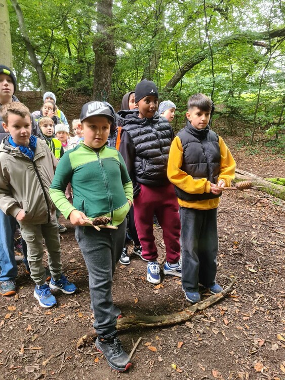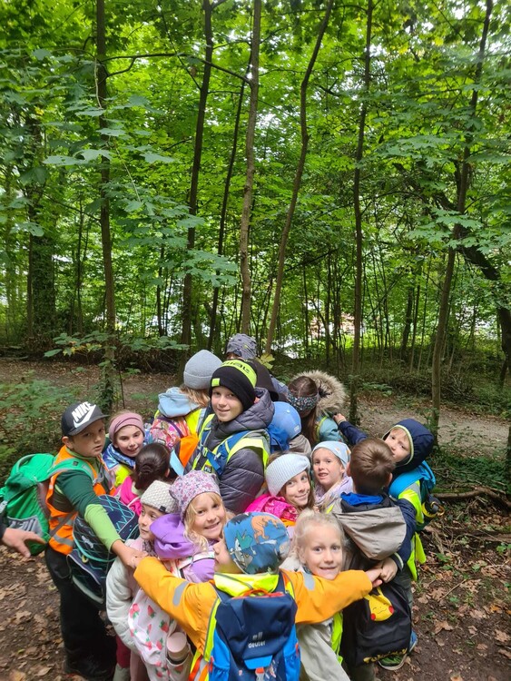 Dort trafen wir einen Förster namens Joseph und wir lernten von ihm sehr viel über Bäume, Blätter, Tiere und Pilze. Im Wald konnten wir sogar einen großen Dachsbau sehen. Das fanden wir besonders spannend. Auf einem Baum sahen wir ein Eichhörnchen und wir machten mit dem Förster tolle Spiele. Am Ende bekamen wir knackige Haselnüsse zum Essen. Wir hatten einen lehrreichen und lustigen Tag im Wald!